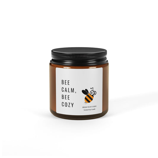 Bee Calm Be Cozy Scented Soy Candle | Bee Lover Gift | Candle Gift | Bee Themed Decor | Eco Friendly Candle (Multi-Size, Amber Jar)