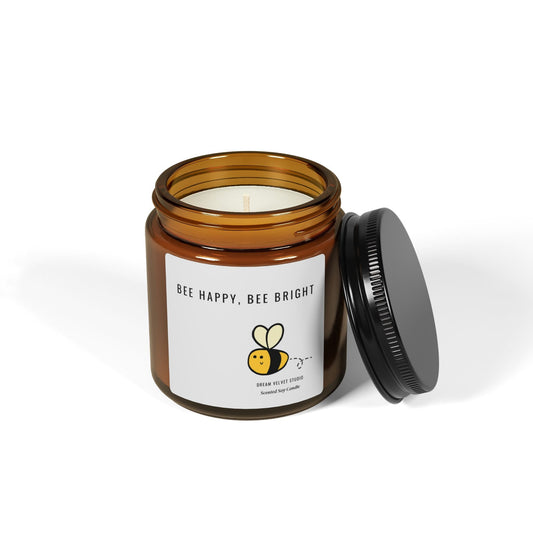 Bee Bright, Bee Happy Scented Soy Candle | Bee Lover Gift | Candle Gift | Bee Themed Decor | Eco Friendly Candle (Multi-Size, Amber Jar)