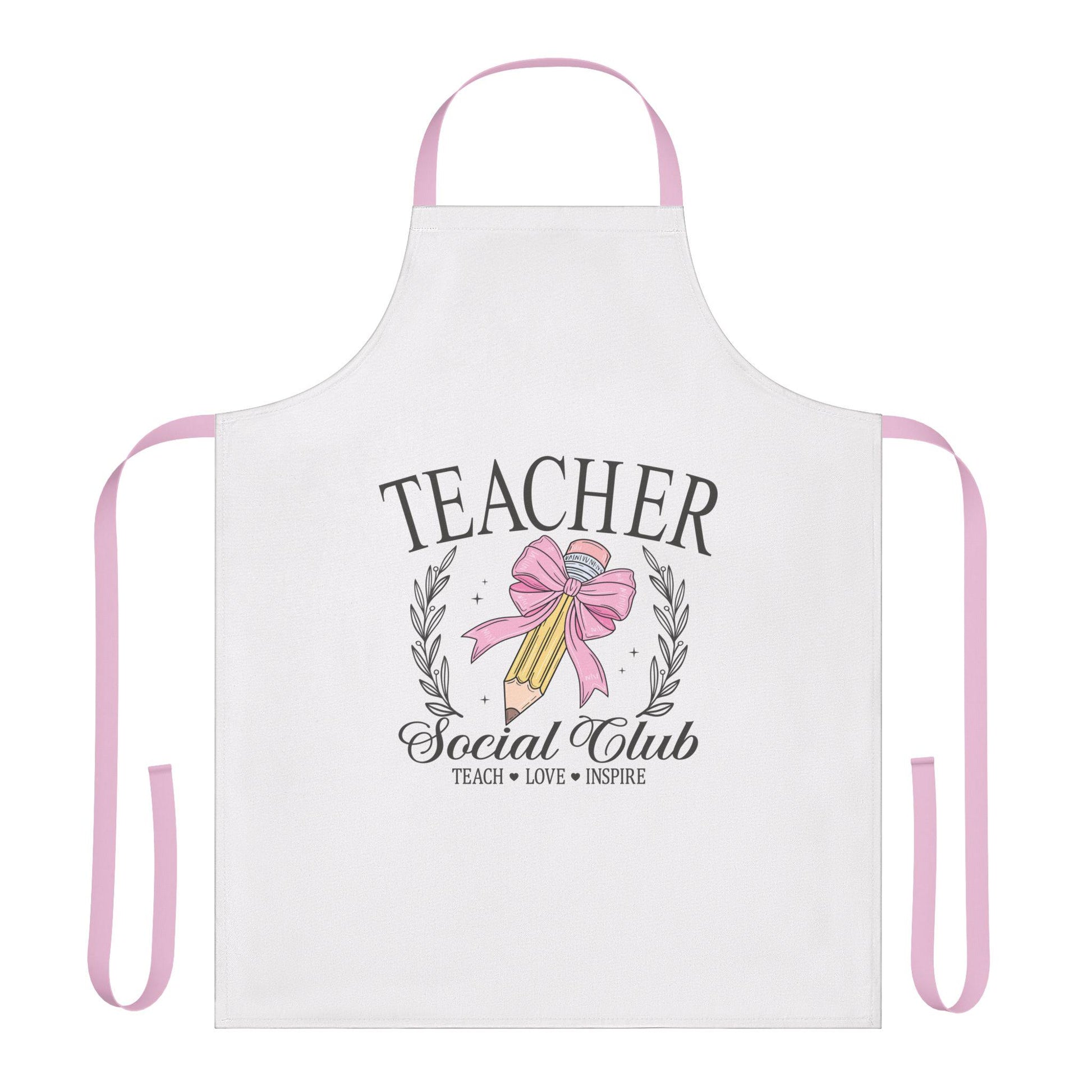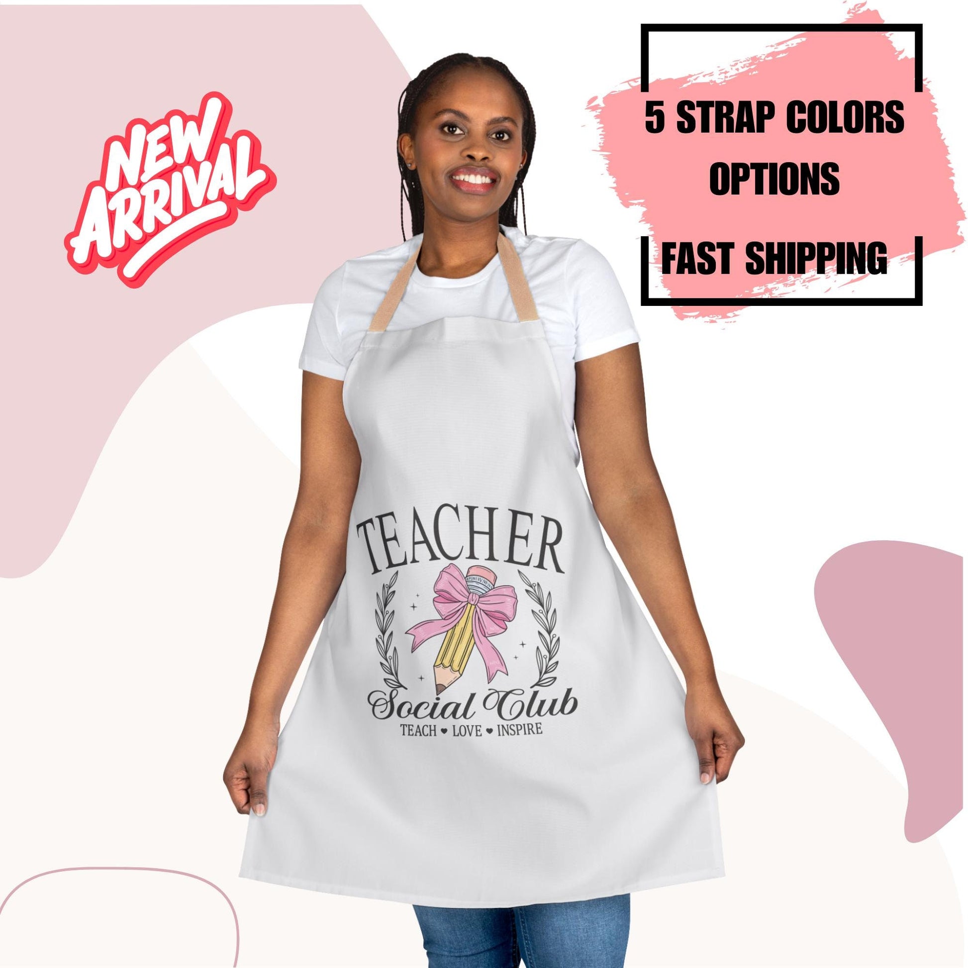 Teacher Social Club Apron, 5-Color Straps | Kitchen Essential | Cooking Gift | Kitchen Apron | Teacher Gift | Gift for Her | Apron for Women